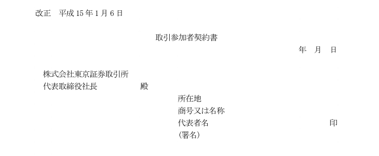取引参加者契約書(取引所取引許可業者以外の外国法人用)(東京証券取引所)